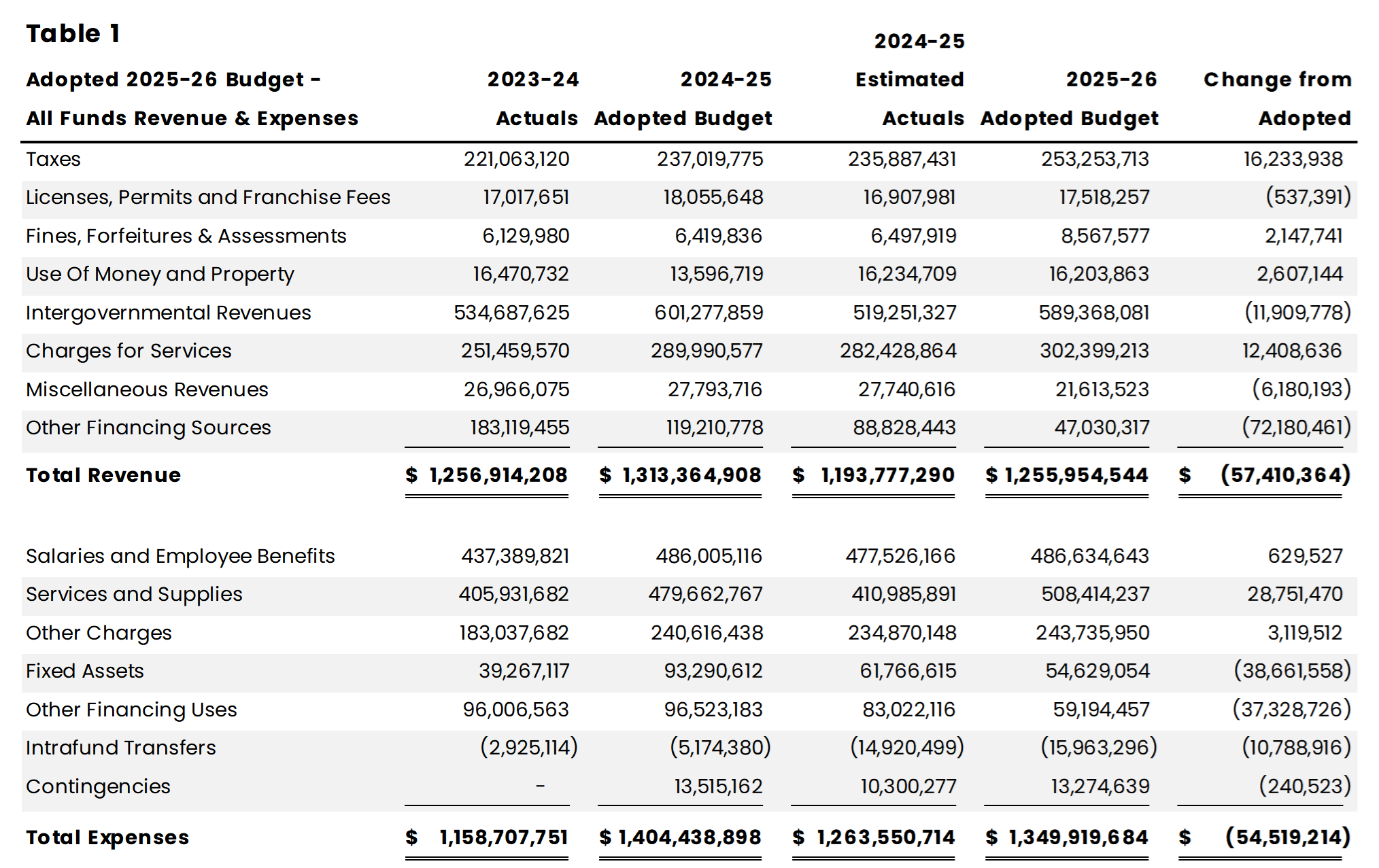 The Budget was published on April 24, 2025, and presented to the Board of Supervisors on April 29, 2025. While the County had much to celebrate over the past year as seen within the hundreds of departmental accomplishments and completion of operational plan objectives, it faced headwinds in the form of reduced health care funding, delayed disaster reimbursements, state budget uncertainty stemming from larger worldwide economic uncertainty, and uncertainty over shifting priorities in Washington, D.C. and threats to federal funding.