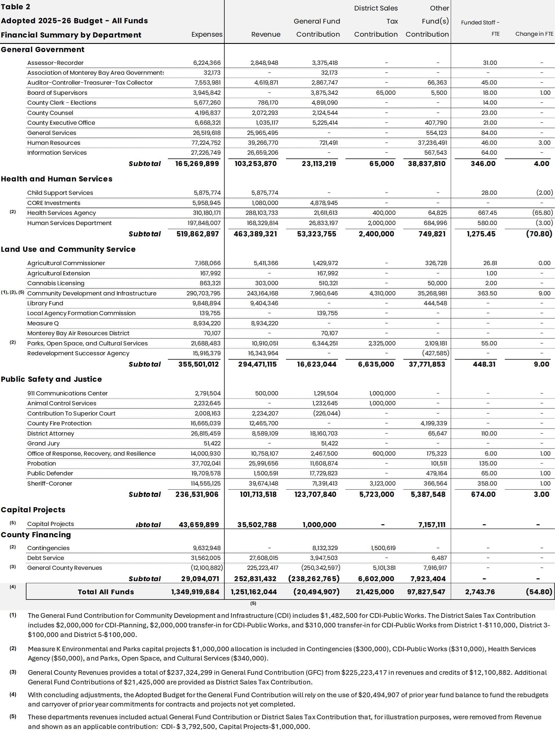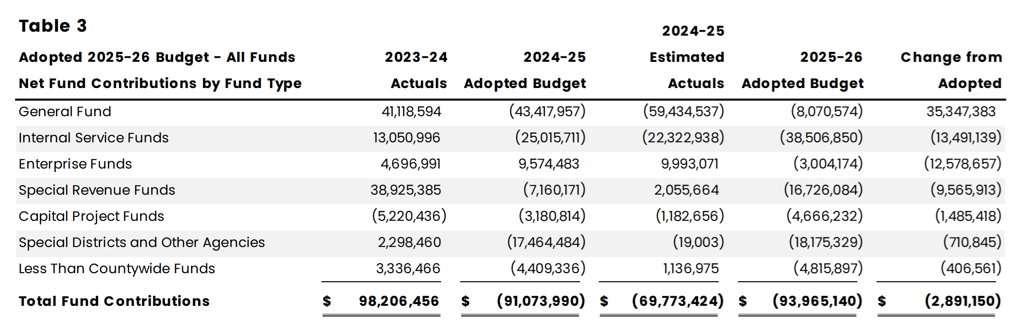 The April 24, 2025 Message was updated to reflect additional information on Federal and State impacts as of May 20, 2025 and to include the final Adopted Budget amounts as of September 2025. Otherwise, the discussion was left unchanged to provide the reader with a sense of the County’s budget as it was being finalized.