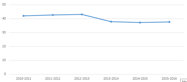Percentage of Santa Cruz County 5th, 7th, and 9th Graders Not in the "Healthy Fitness Zone"